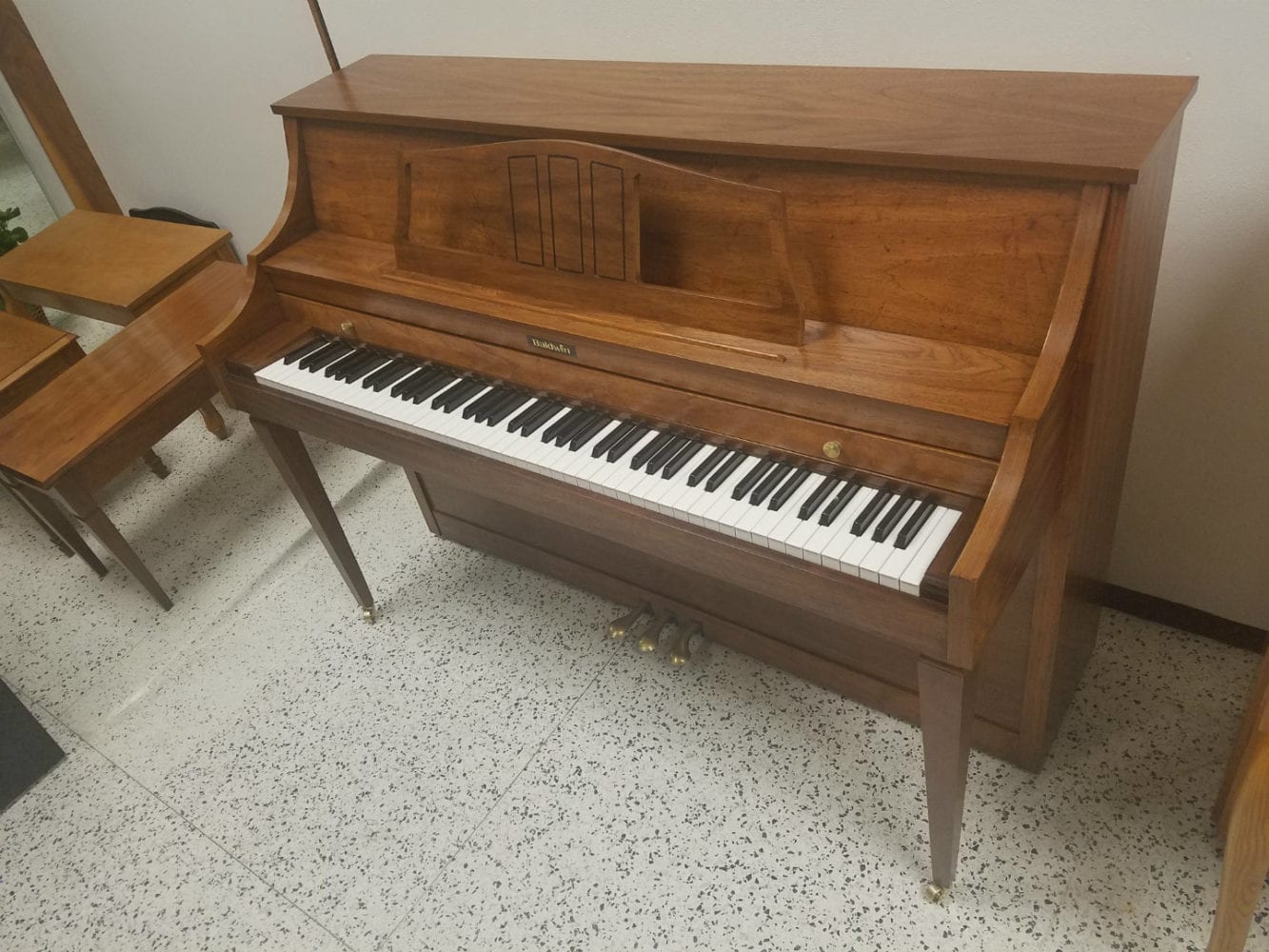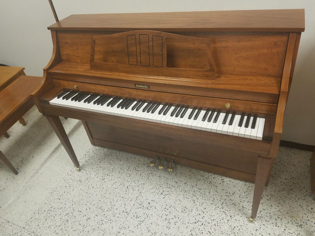 Baldwin Upright Console Piano June 5, 2018 admin Baldwin / Chickering, Upright Pianos Baldwin Upright Console Piano • As New Condition • French Oak Finish • Made in U.S. • 5 Year Warranty ❮ ❯