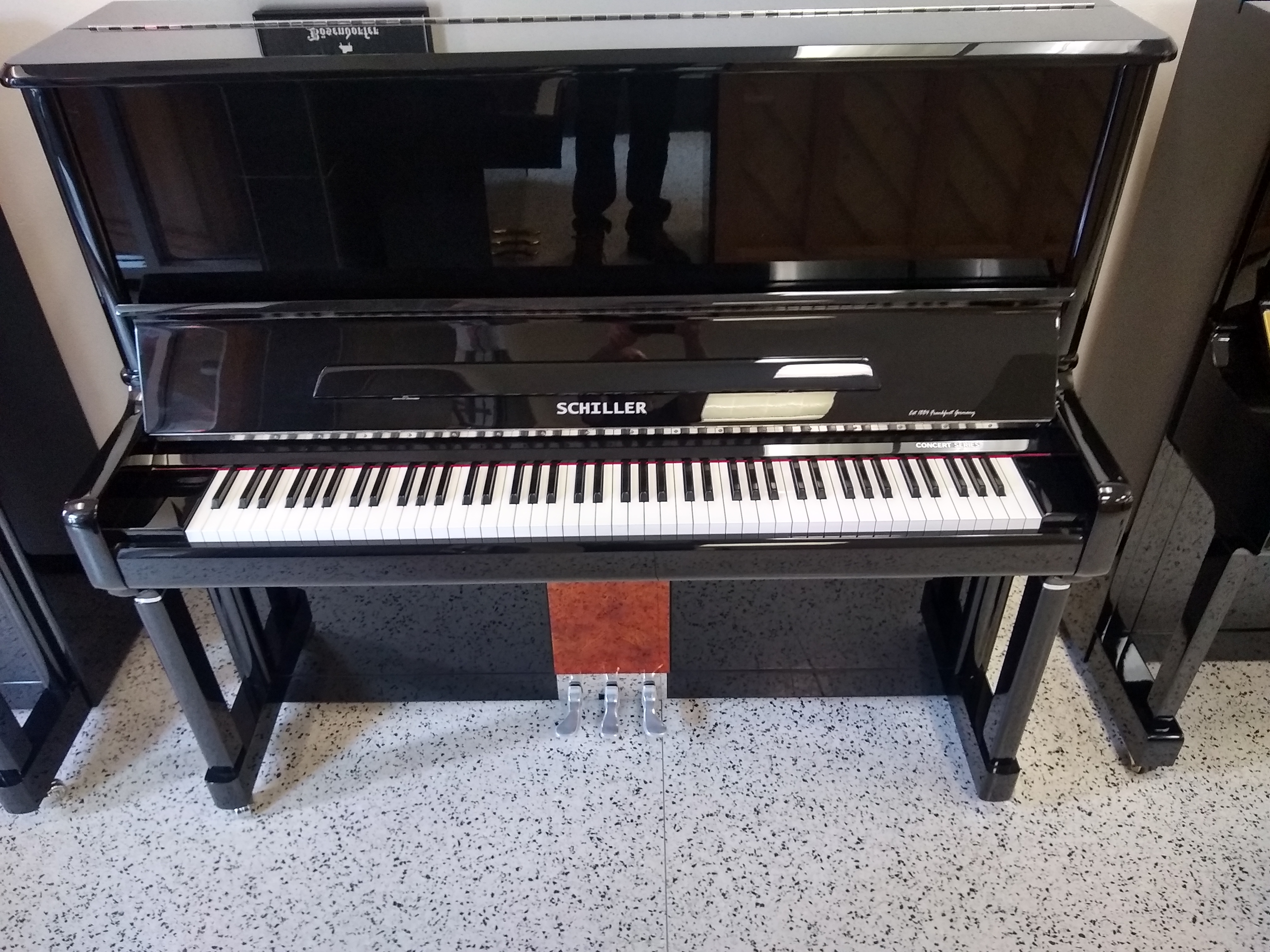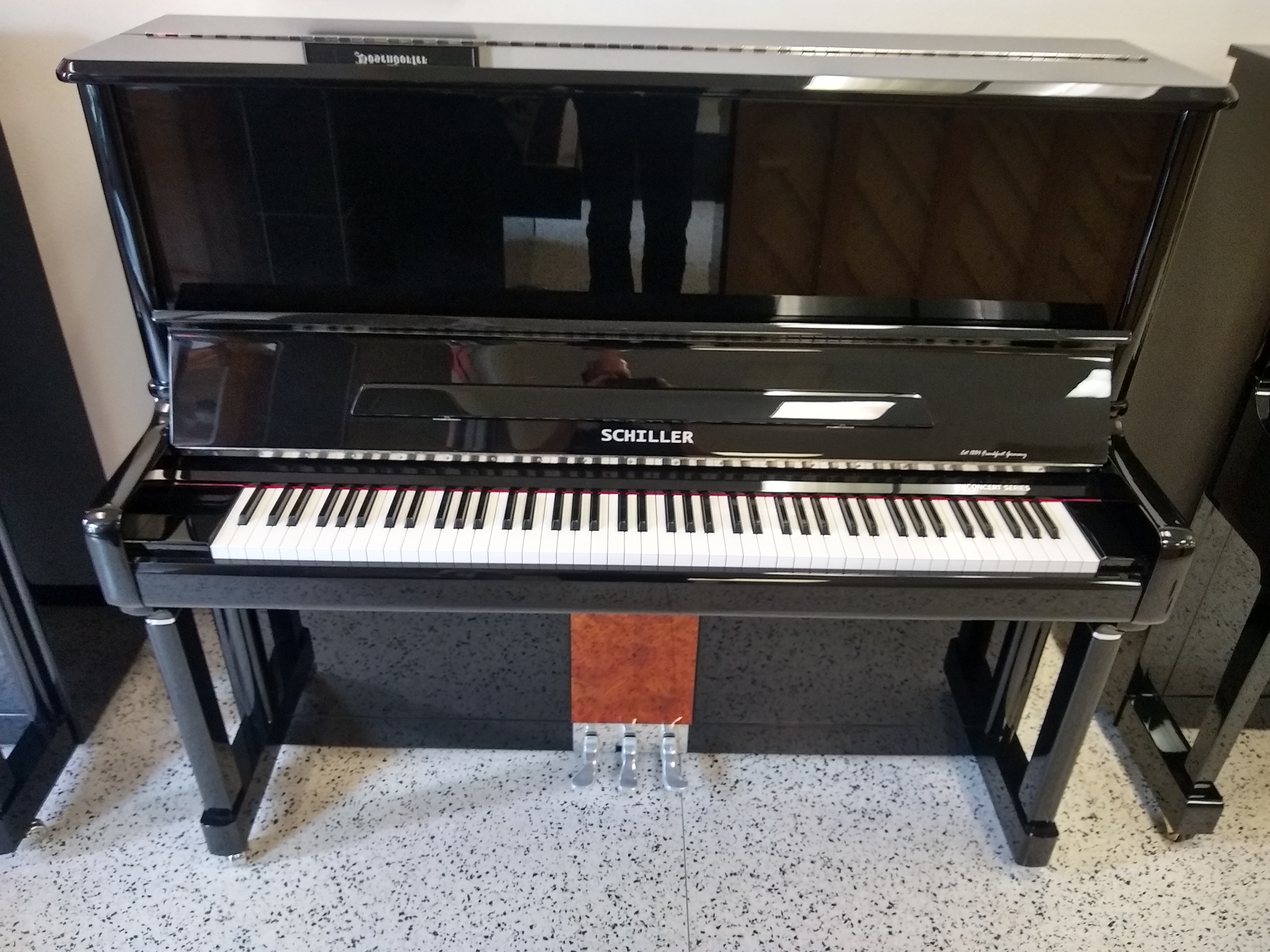 Schiller Concert 52′ Upright Piano August 19, 2024 admin Schiller, Upright Pianos 52″ Black Polish Carbon Action Components Germany-Strunz Sounding Board Abel Hammer klinke A Graffes Roslau Strings 5 Year Warranty ❮ ❯